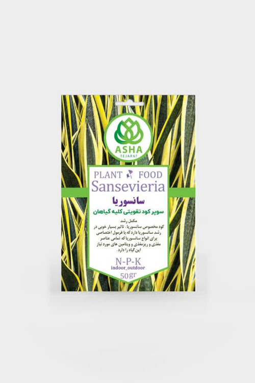 کود تخصصی سانسوریا برند آشا تجارت، با فرمول NPK متعادل و مواد مغذی ضروری، تغذیهای کامل برای گیاه محبوبتان فراهم میکند. چه در فضای داخلی و چه در فضای باز، تنها با ۵۰ گرم، تحولی چشمگیر در طراوت و رشد سانسوریا ایجاد کنید.